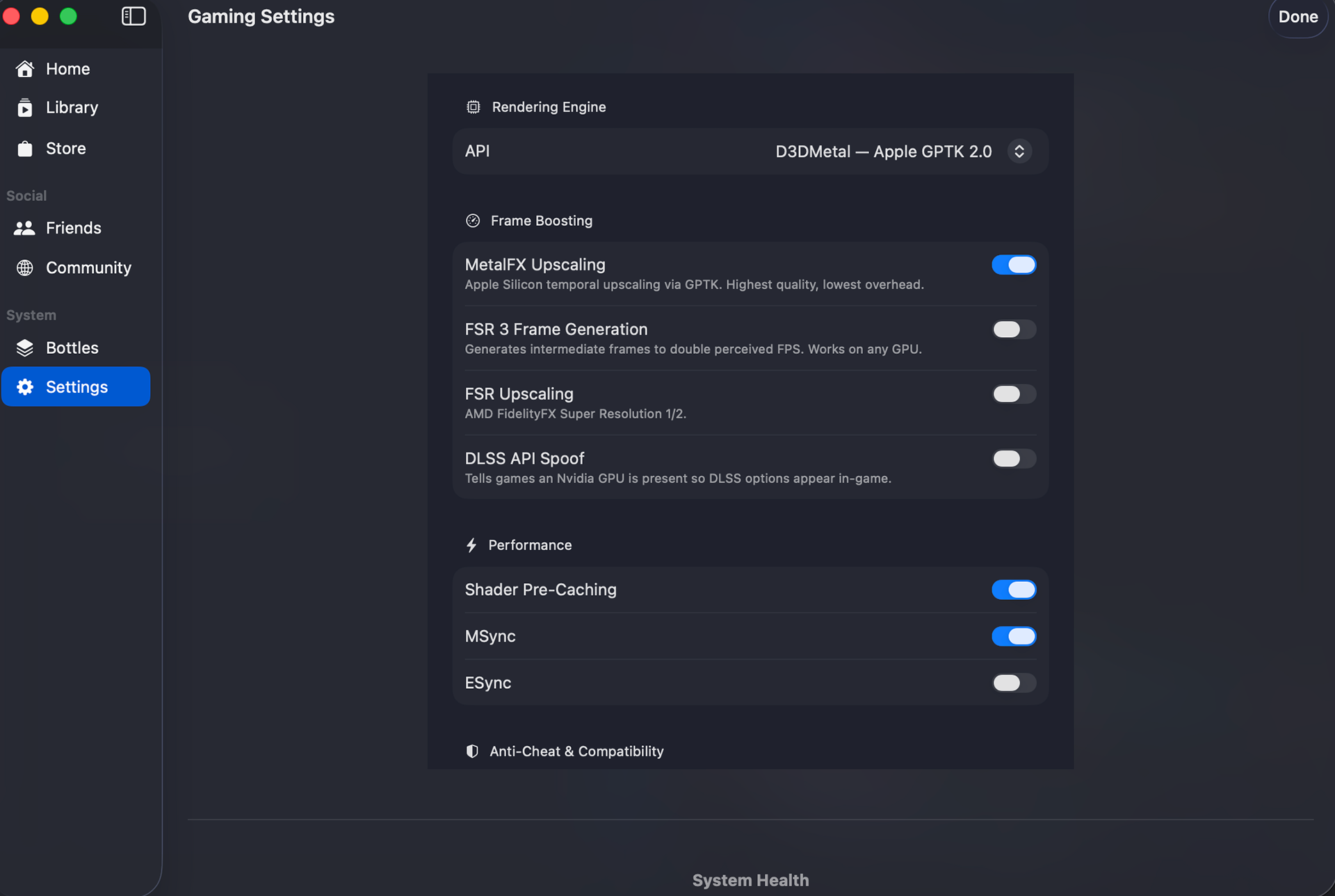 Using SWIFT, Game Porting Toolkit 2 I have made a application which can run/emulate windows x86 games on MacOS this is a personal project and I decided to call it Aurora the client uses swift backend to install wine/GPTK2 to make sure the applications work.
